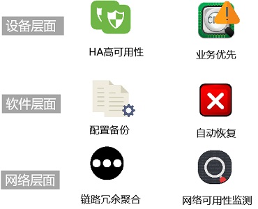 • 核心設備、匯聚設備全采用雙機部署,其鏈路均采用雙鏈路架構。